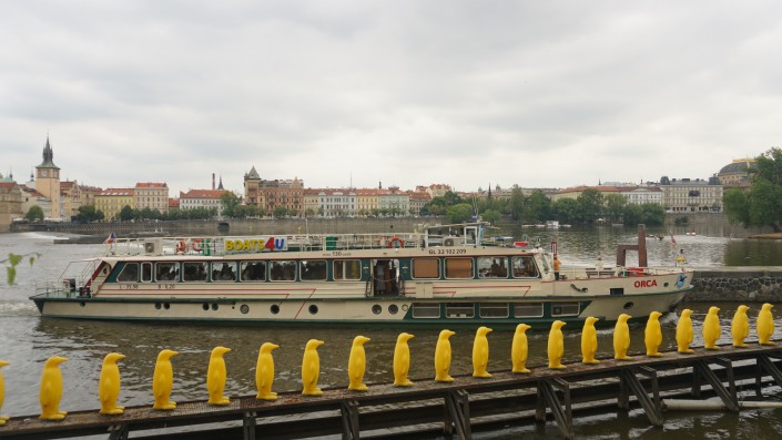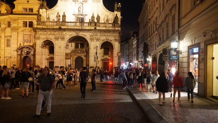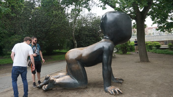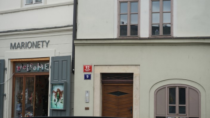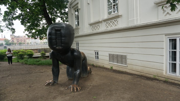 Отсюда же недалеко до музея Франца Кафки. Перед входом в музей установлена скандальная скульптура Давида Черны "Писающие мужчины". Скульптор прославился множеством подобных арт-объектов. Первая его работа - это танк, выкрашенный в розовый цвет, который он отправил на плоту по Влтаве. За эту шалость Давиду Черны выписали огромный штраф и арестовали на 14 суток. Он также создал памятник Подхалимству, вращающуюся голову  Франца Кафки, автобус на руках в Лондоне, голову, плюющую в океан, в Нью-Йорке и многие другие.