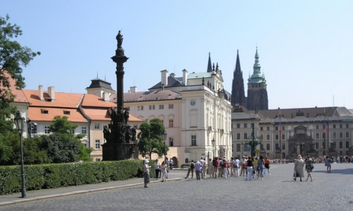 Чумная колонна на Градчанской площади была создана в 1726 году скульптором Фердинандом Брокоффом. Столб был установлен на месте, где в период чумы прямо под открытым небом велись непрерывные богослужения.