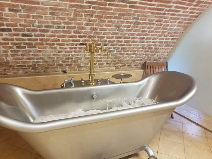 Эта же пивоварня придумала такую процедуру, как пивные ванны. Стоит процедура около 30 евро. В ванну с минеральной водой добавляют сбор из целебных трав и специальное темное пиво для ванн. Процедура расслабляет мышцы, прогревает суставы и обладает оздоровительным эффектом для волос и кожи.