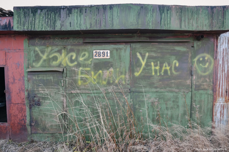 На соседнем гараже надпись "Уже были у нас" и смайлик.