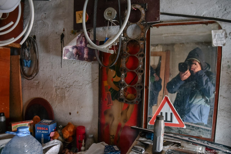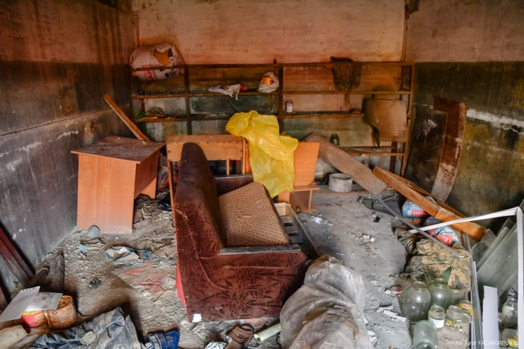 Мужчин мы находим в гараже. Один из них - Николай Васильевич - рассказывает, что у него в этом бывшем кооперативе три гаража, за ними он постоянно смотрит, охраняет от мародеров.