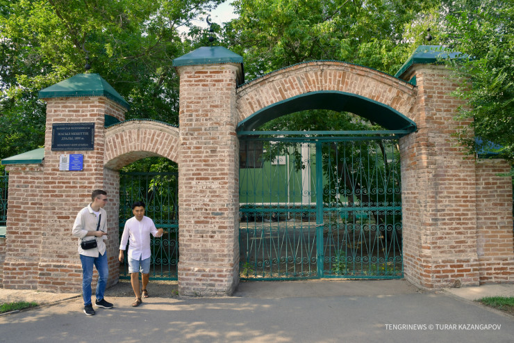 Наша историческая прогулка начинается с конца XIX века. Переносимся на пересечение проспектов Республики и Абая. Возможно, вы уже обращали внимание на старый кирпичный забор, на котором висит табличка, что он входит в список памятников истории и культуры местного значения.