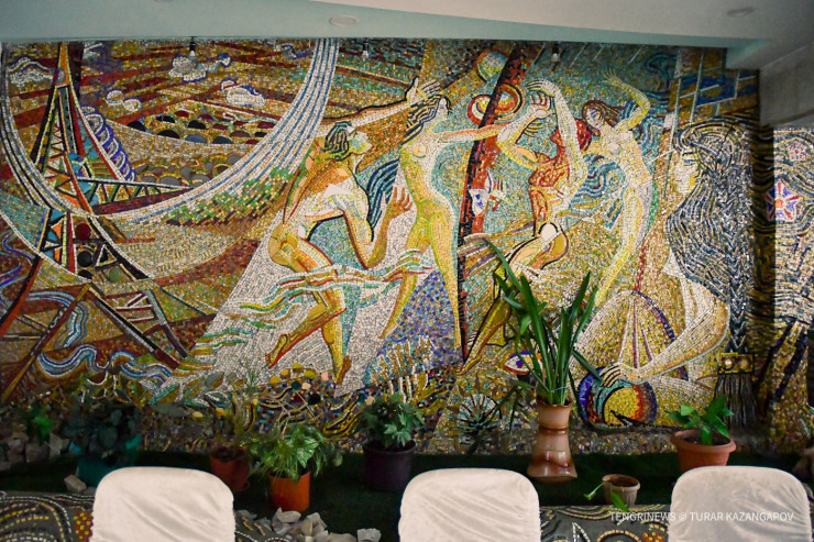 "Материал, из которого выполнена мозаика, называется смальта. Это художественное стекло, его отливают и раскалывают на небольшие фрагменты. В советское время были специальные заводы, которые занимались изготовлением этого материала. Сейчас подобных предприятий практически не осталось на территории бывшего СССР. В наши дни такие работы стоили бы очень дорого", - объясняет Темиртас.