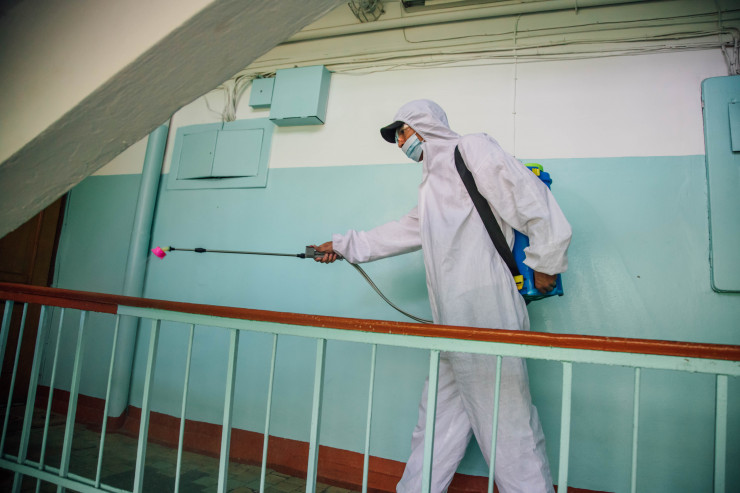 Осылайша, сертификат алған дезинфекторлар топ-топқа бөлініп, күн сайын қаланы дезинфекциялаумен айналысады. Бір адам орташа есеппен күніне 10-12 үйді дезинфекциялап шығады.