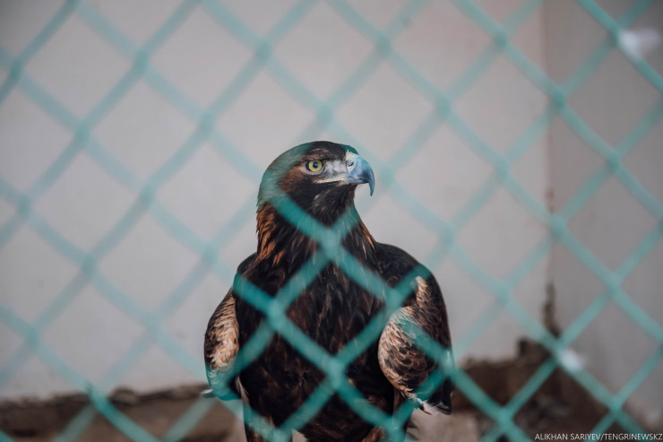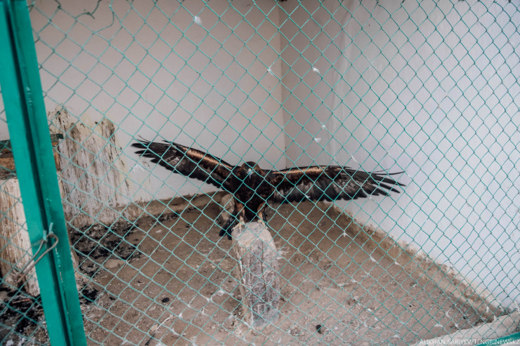 Сейчас кормим один раз в день, в месяц уходит 15-20 килограммов мяса. Вот ягненка купили, берем кроликов, говядину, баранину. Беркут ест только свежее мясо, иначе заболеет. Раньше у нас было хозяйство, мы держали скотину, но потом стали брать пищу на базаре. А зимой птицы кормят себя сами, на охоте. У каждого питомца свой характер: кто-то тишину любит, а кто-то наоборот, и в охоте тоже все разные: один беркут только на лису работает, а другой - только на волка. Когда период линьки закончится, они будут участвовать в соревнованиях, ждем осени.