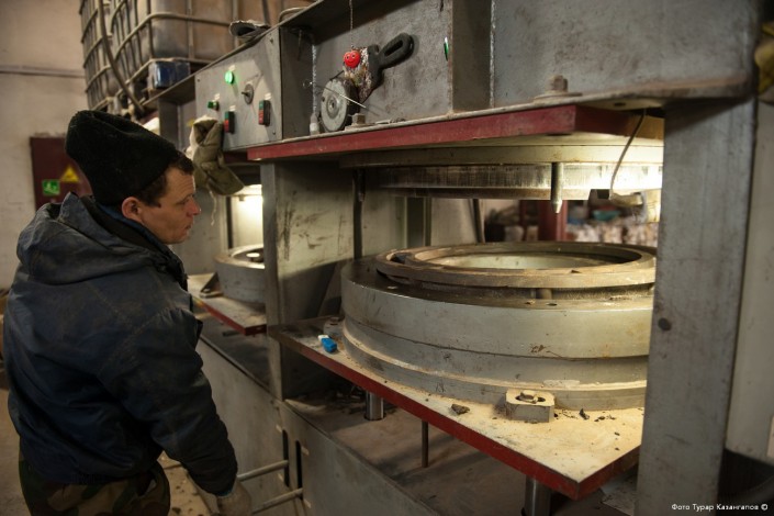 "Потом заливается в форму, прессуется. После охлаждаем. Получается легкая и практичная продукция".