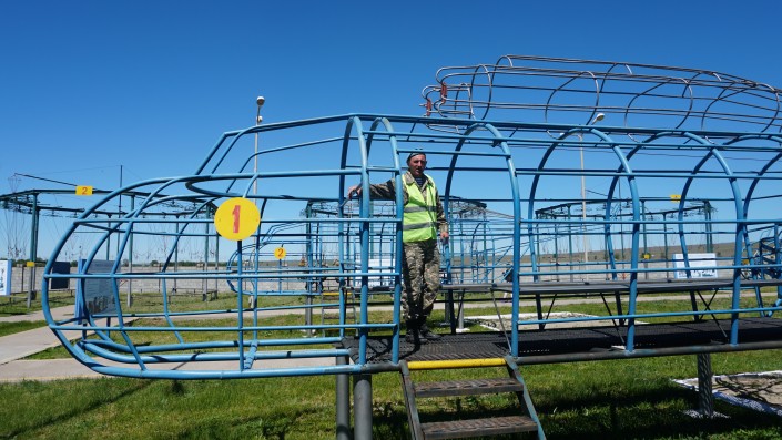 На учебной базе установлены макеты самолета и вертолета, чтобы условия тренировок были приближены к реальным. На такие тренировки будущим десантникам отводят более 80 часов.