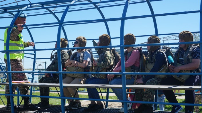 В этом живописном месте находится учебный центр "Берег" Капшагайского гарнизона. Здесь расположились подразделения инженерных войск. На фото ниже можно увидеть, как работают солдаты инженерно-саперного отделения.
