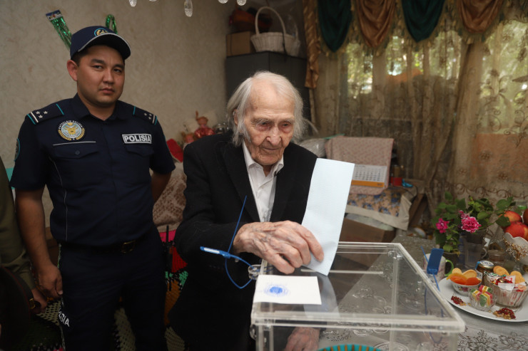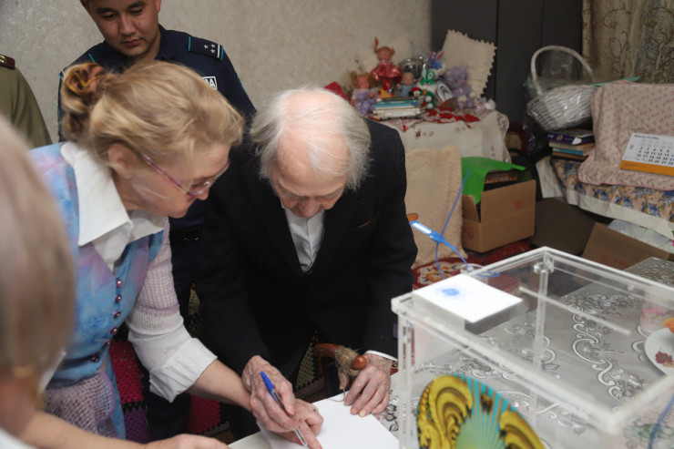 Между тем первая половина дня завершалась, и в некоторых социальных учреждениях вместе с ней завершалось и голосование. К примеру, в Центре социальных услуг "Шанырак". Здесь проживают 260 человек. Это пожилые люди, инвалиды первой, второй группы. Они отдали свой голос еще утром. 3 воздержались, 12 человек высказались против, свыше 95 процентов за, сообщило нам руководство центра.