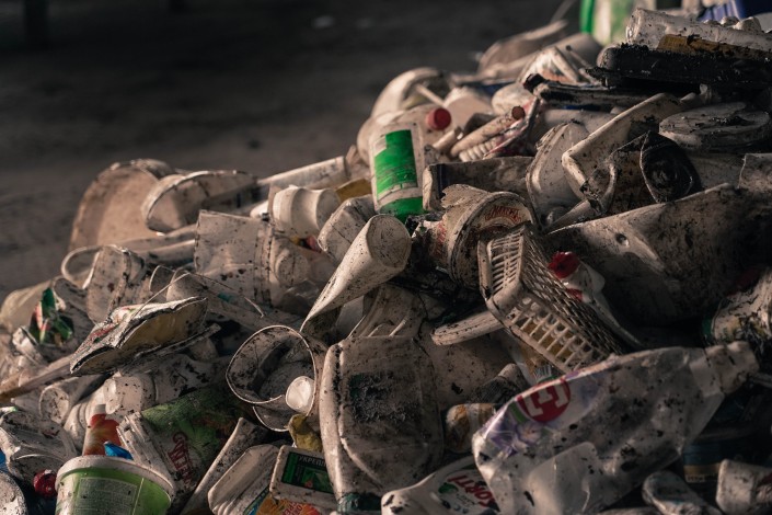 "Ресайклинг ТК" функционирует по отработанной годами схеме. В первую очередь твердые бытовые отходы отправляются на сортировочную линию. Здесь рабочие вручную отделяют пластик от других видов вторсырья. На первый взгляд это довольно просто. Но многие предметы состоят из нескольких видов материала. Их сначала откладывают в сторону, затем разбирают на части и снова сортируют по фракциям.