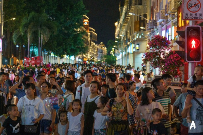 Вообще в Сямыне очень людно. И больше всего народу на местной пешеходной улице.