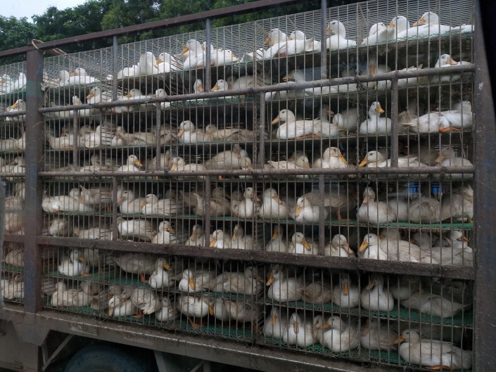 Еще одной интересной особенностью поездки на автобусе между китайскими городами (хотя, может быть, это присуще лишь нашему маршруту) является то, что как таковой сельской местности мы не увидели. На протяжении всего пути стояли высотные дома и фабрики. За исключением, может быть, грузовиков, которые везли в Шэньчжэнь живых уток.