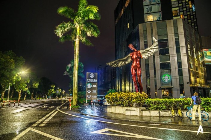Эта неторопливая гигантская улитка в какой-то степени символизирует южный китайский город Чжухай. Тем, кто прибыл сюда из соседнего мегаполиса Гуанчжоу (население около 20 миллионов человек), советуют обратить внимание на размеренное движение автомобилей в Чжухае (население около 2 миллионов человек). Говорят, что местные жители здесь особенно никуда не спешат.