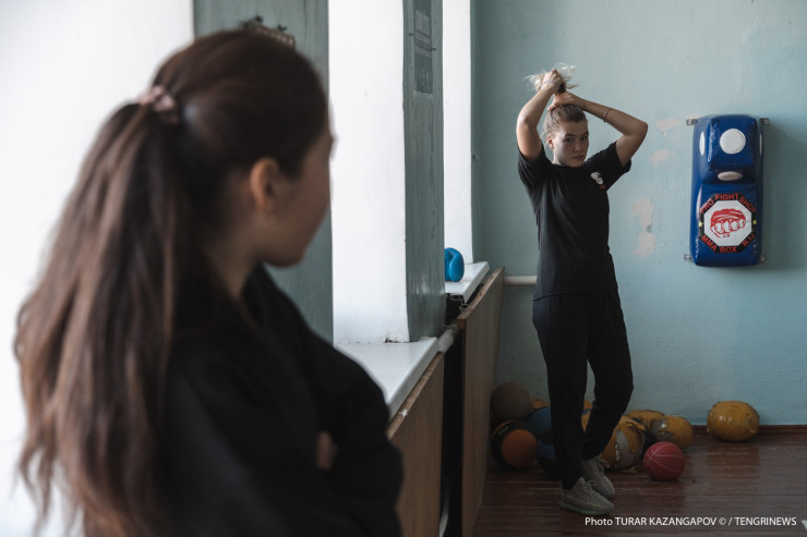 Вместе с Аминой в секции занимаются еще несколько девочек, среди них есть те, у которых боксом в разное время увлекались чуть ли не все члены семьи. Вообще, боксерские династии - это норма для города Абая.