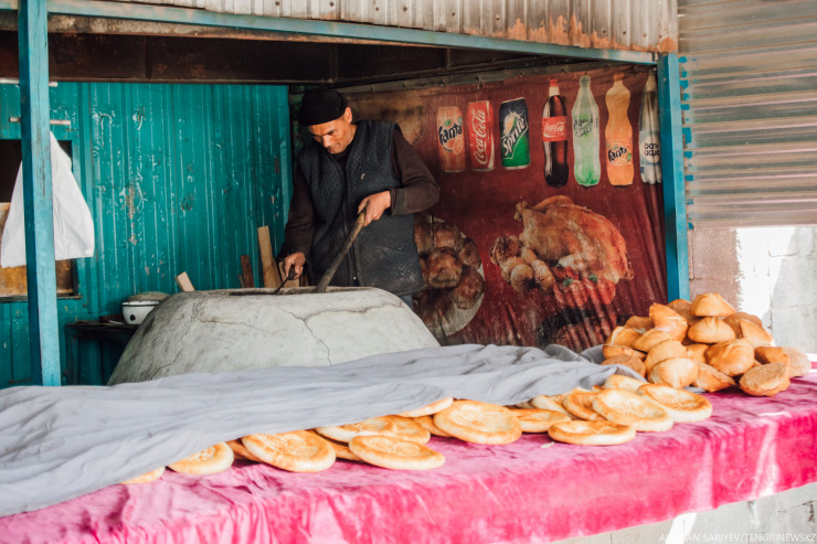 Одно из самых популярных лакомств здесь - это горячая лепешка. Мы и сами не удержались от соблазна и тоже ее попробовали. Продавец Карина рассказала нам, что сейчас клиенты приходят каждый день, и среди них есть постоянные, а вот зимой было туго. Помимо лепешек, она торгует самсой, молоком, курицей. В очень хорошие дни удается заработать до 70 тысяч тенге. Сама девушка еще работает учителем, и она попросила ее не фотографировать. Увлекательный процесс изготовления лепешек мы подглядели у ее соседа.