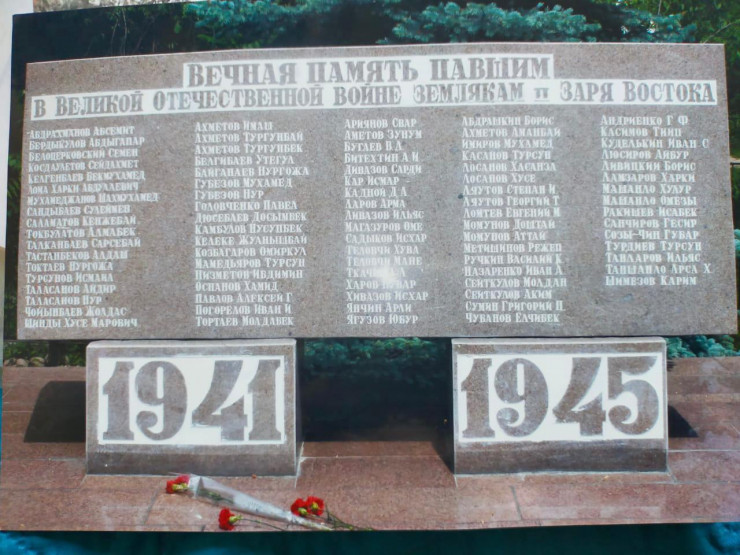 "Раньше хотели назвать Биянху, хотели Масанчи, но все ведь тогда решал райком. Когда все собрались и начали предлагать много разных названий, шли споры. И тут один человек встал за трибуну и говорит: не надо никакие имена ставить, вон, видите, заря, а это восток. Это ведь то самое место, откуда солнце встает, это заря востока!"