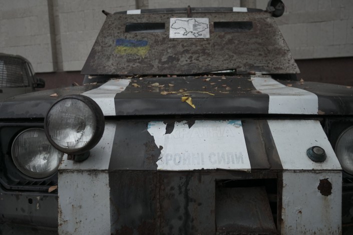 "Это музей АТО, то есть антитеррористической операции", - поясняет наш проводник и говорит, что все представленные здесь экспонаты привезены сюда из мест, где проходили боевые действия 2014 года.
