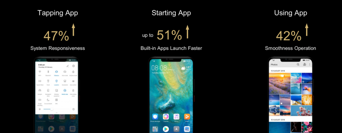 По заверениям инженеров компании, внедрение новой оболочки EMUI 9.0 позволило увеличить производительность по ключевым пунктам почти в два раза. Так, отклик системы вырос на 47 процентов, а скорость загрузки встроенных приложений - более чем на 50 процентов!