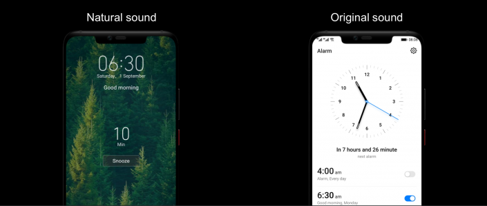 В качестве мелодий будильников и уведомлений в EMUI 9.0 используются звуки природы: от звука текущей воды до щебетания птиц. Эти звуки делают интерфейс более уютным и комфортным.