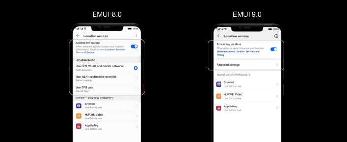 Помимо меню "Настроек", изменения коснулись организации основных компонентов интерфейса. В EMUI 9.0 важные визуальные элементы перемещены так, чтобы снизить нагрузку на глаза пользователя. Некоторые кнопки были смещены в нижнюю часть экрана, чтобы упростить доступ пользователям, предпочитающим работать со смартфоном одной рукой.