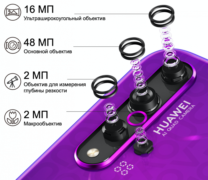 Основная камера смартфона состоит из четырех модулей: камеры для съемки с высоким разрешением, ультраширокоугольного объектива, модуля для макросъемки и объектива для съемки портретов с эффектом размытия заднего плана. Благодаря им HUAWEI Nova 5T делает качественные снимки практически в любых жанрах, от обширных пейзажей до крупных планов и портретов.
