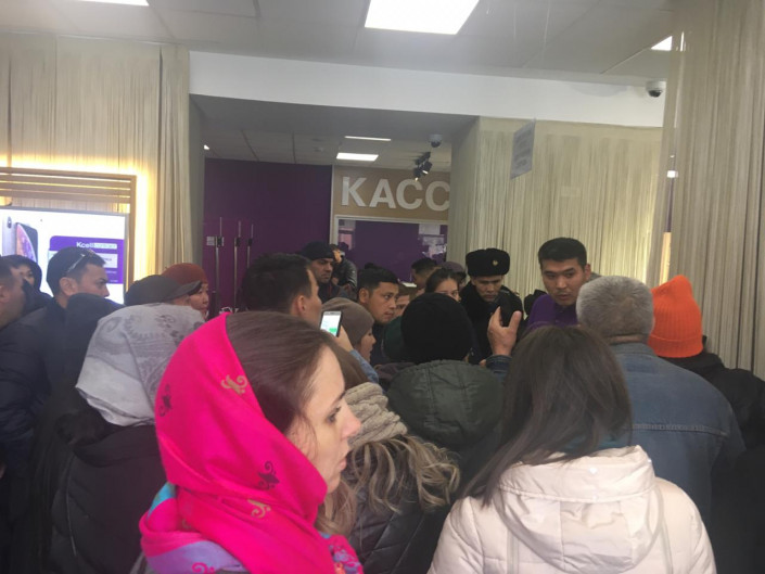 Казахстанцы "штурмуют" салоны мобильных операторов после отключения сотовой связи, передает корреспондент Tengrinews.kz.