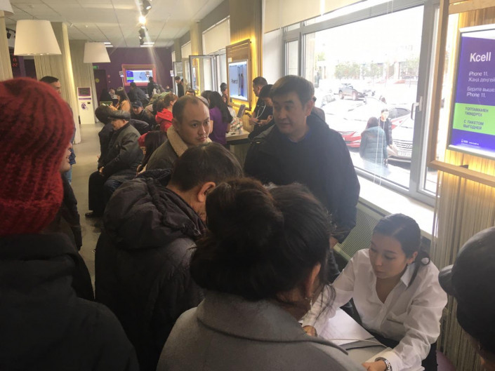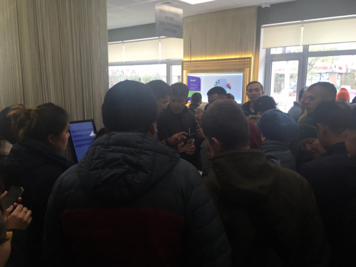 Консультанты попросили собравшихся подождать, заявив, что всем, кто отправил СМС с ИИН, подключат связь после 14.00.