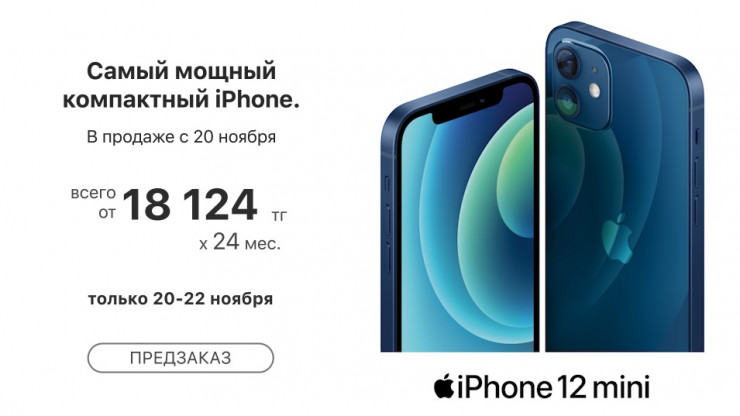 C 20 ноября в Казахстане стартуют продажи iPhone 12 mini - самого компактного и доступного смартфона из новой флагманской линейки Apple.
