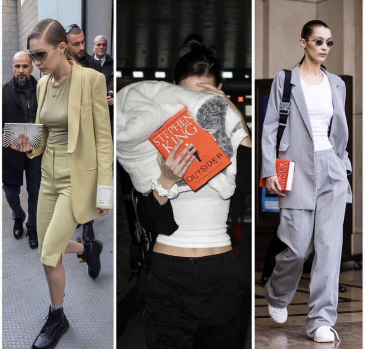Как пример Кендалл Дженнер со сборником эссе Челси Ходсон, Джиджи Хадид, мелькнувшая в объективе с книгой "Посторонний", и ее сестра Белла с книгой Стивена Кинга.