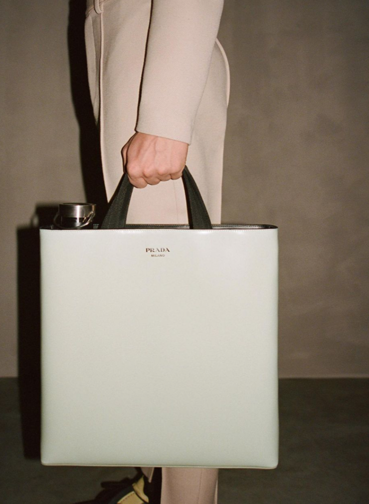 В коллекциях Prada нет ничего лишнего: предметы функциональные, удобные и эстетичные. Однако если приглядеться к деталям, то тут можно найти очень интересные для глаз вещицы. Дело в том, что классические сумки-тоут были представлены в форме, напоминающей флягу. Воды, конечно, в эту флягу не налить, однако деталь делает сумку необычной.