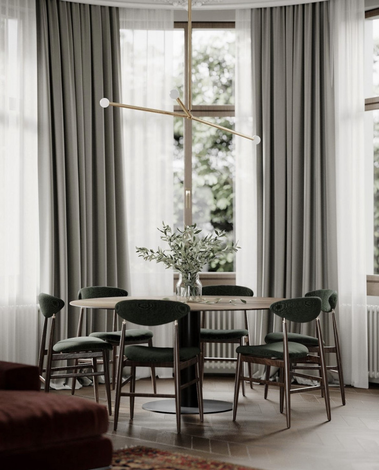 Еще один тренд в колористике – любые оттенки драгоценных материалов или камней. Элегантные и благородные цвета добавляют интерьеру глубину и делают его дороже. Они одинаково хорошо смотрятся как при естественном свете, так и при искусственном освещении.
