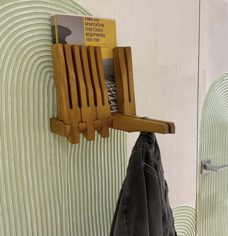 Что может быть лучше универсальных предметов интерьера? Эта вешалка из дерева отлично держит верхнюю одежду и тяжелые книги, являя собой декоративный элемент.