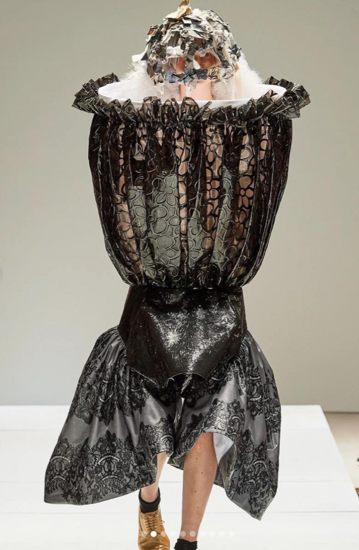 Теперь плесень придает дороговизну не только сыру. Создатель бренда Noir Kei Ninomiya предлагает наряд из блестящей сетки с имитацией ветвящихся мицелиев. Авангардный бренд гарантирует незабываемые впечатления для своих покупателей за счет креативных решений.