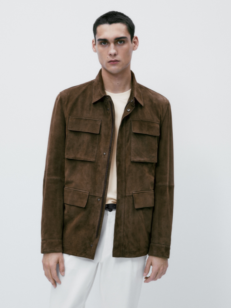 Похожую куртку из замши можно найти в более бюджетном Massimo Dutti за 180 000 тенге.