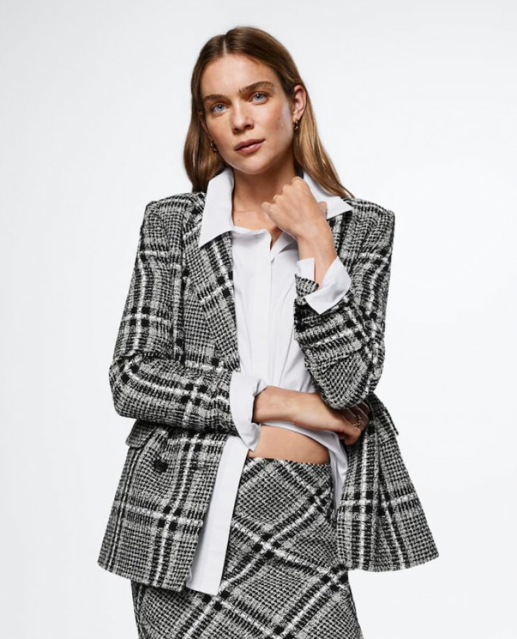 Клетка может быть как в классическом черно-белом исполнении, так и в ярком цвете. В холодное время года рекомендуем присмотреться к твидовым пиджакам, которые придадут нотку аристократизма любому базовому образу.