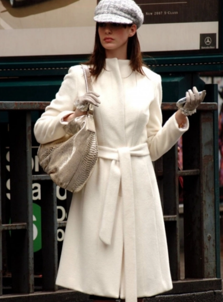 Работа в журнале "Подиум" быстро преобразила помощницу главного редактора Миранды Пристли, превратив некогда серую мышку Андреа в законодательницу мод. Белое пальто, в котором появилась Энн Хэтэуей, исполнившая главную роль, запомнилось зрителям по ту сторону экрана больше всех. Светлое элегантное пальто - не самая практичная вещь в гардеробе, но однозначно самая эффектная.