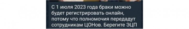 Следовательно, сообщение о том, что с 1 июля 2023 года брак можно будет заключить онлайн, не является правдой.