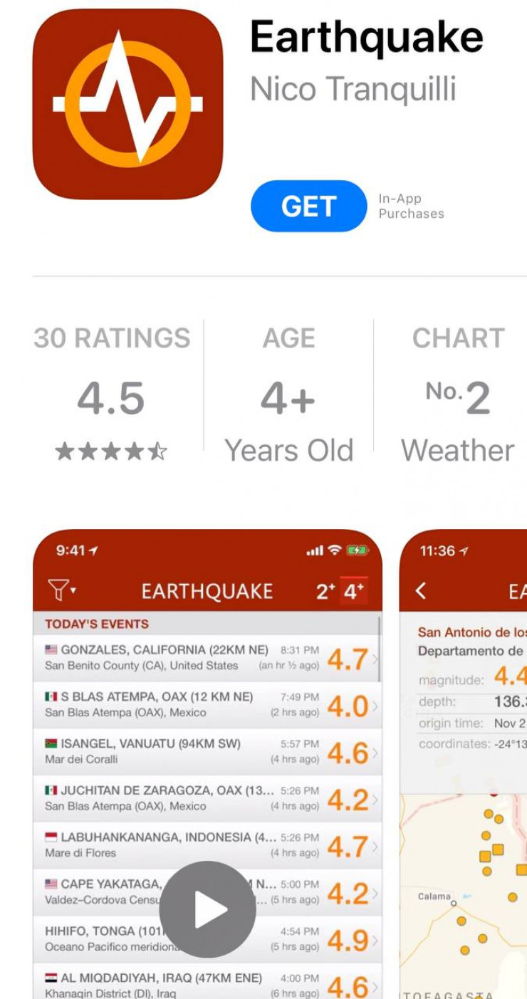 Как пишет издание iPhones, в приложении есть платная подписка, позволяющая активировать уведомления о новых землетрясениях в стране и детально настроить параметры, при которых должны работать оповещения.