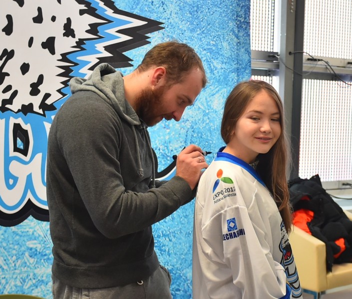 Далее фотографии с прошедшей игры, предоставленные Tengrinews.kz пресс-службой хоккейного клуба "Барыс".