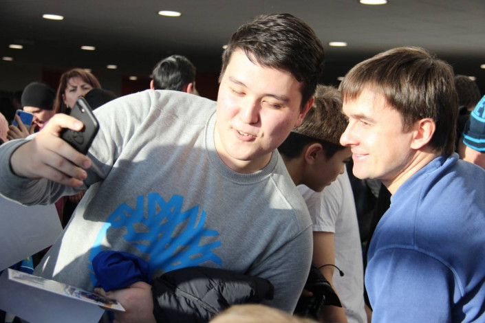 В полтора часа общения с фанатами вошли не только памятные росписи, но и совместное фотографирование с небольшой возможностью перекинуться парочкой слов.