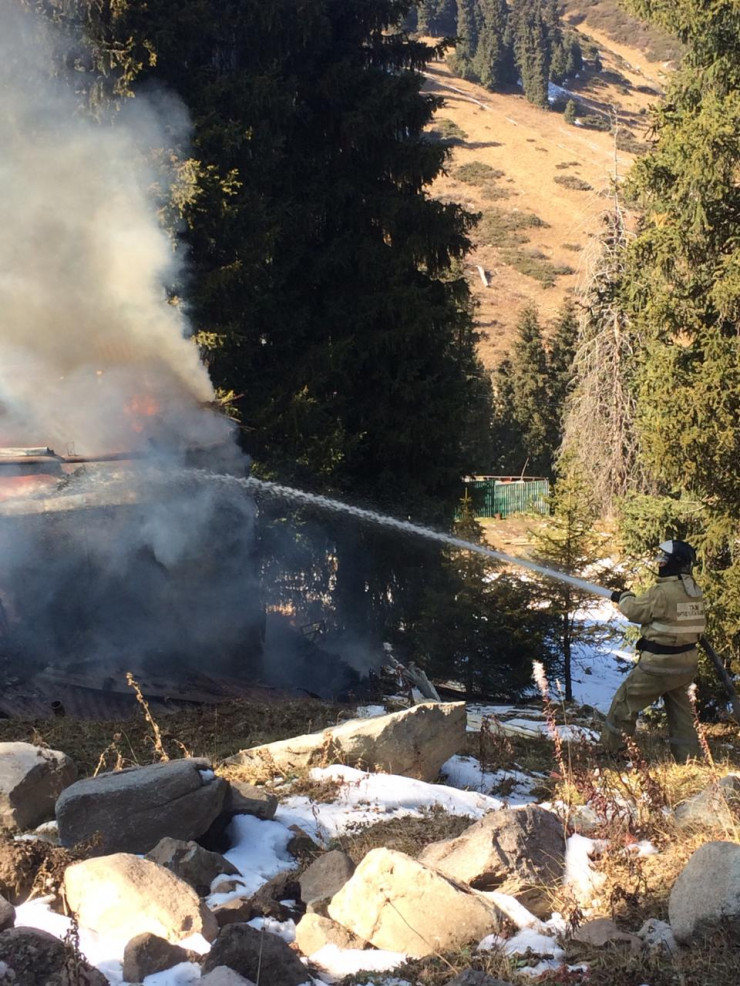 "По прибытии установлено горение открытым пламенем одноэтажного деревянного строения. Создалась угроза перехода огня на близрасположенные ели. Принятыми мерами возгорание локализовано в 12.45. Деревья удалось отстоять. В тушении возгорания задействовано 13 пожарных, три единицы техники", - сообщили в пресс-службе ДЧС Алматы.