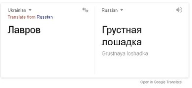 Так, словосочетание "Російська Федерація" сервис "переводит" как "Мордор", а если ввести в программу запрос "Лавров" (имеется ввиду фамилия министра иностранных дел России Сергея Лаврова), в окошке перевода возникнет слово "грустная лошадка".