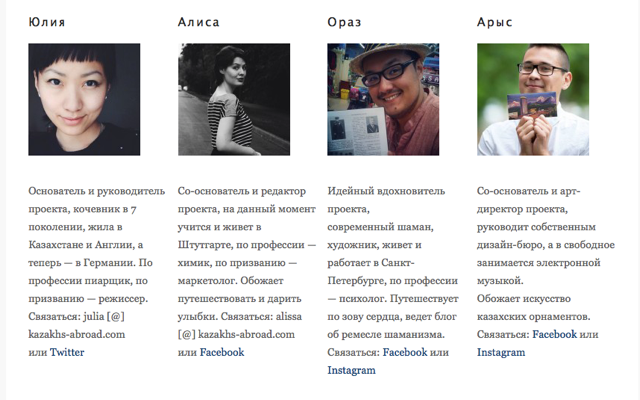 Участие в проекте бесплатное. Организаторы сами выходят на казахстанцев за рубежом и предлагают им участие, либо же можно предложить свою кандидатуру через кнопку "обратной связи" и далее уже получить анкету участника. Каждый, кто написал историю, указывает свои контакты, с помощью которых с ним могут связаться гости портала, желающие узнать побольше о той или иной стране.