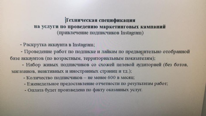 В социальных сетях появились скриншоты с сайта госзакупок, где одной из услуг, которые хотела приобрести национальная компания, были услуги по привлечению подписчиков в Instagram.