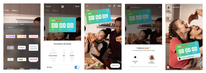 К Stories ("Историям") можно прикреплять интерактивные стикеры с обратным отсчетом. Это, по словам разработчиков, позволит друзьям вместе отсчитывать время до захватывающих моментов. Когда время закончится, приложение пришлет специальное уведомление.