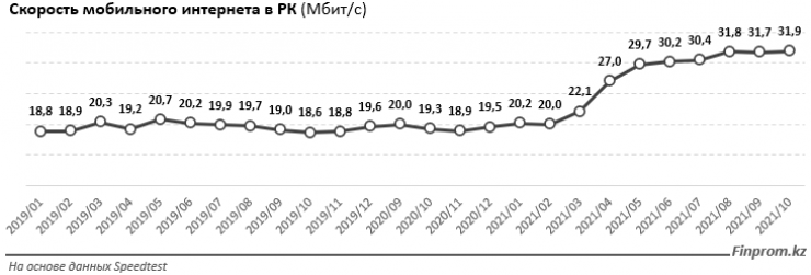 На днях аналитическое агентство Finprom опубликовало информацию об увеличении средней скорости интернета в Казахстане более чем на 60 % по сравнению с прошлым годом. Эксперты отталкивались от данных замеров сервиса Speedtest компании Ookla, который аккумулирует реальные замеры десятков тысяч абонентов всех сотовых операторов Казахстана. На сегодняшний день это самый объективный измеритель скорости.