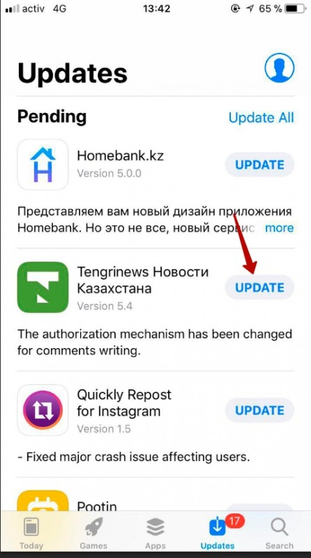 Обновить приложение Tengrinews.kz для iOS можно аналогичным образом.