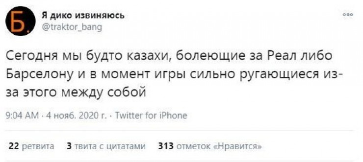 "Бүгін біз "Реал" немесе "Барселонаға" жақтасып, ойын барысында сол үшін өзара қатты ұрсысып отырған қазақтар сияқтымыз", - дейді желі қолданушысы.