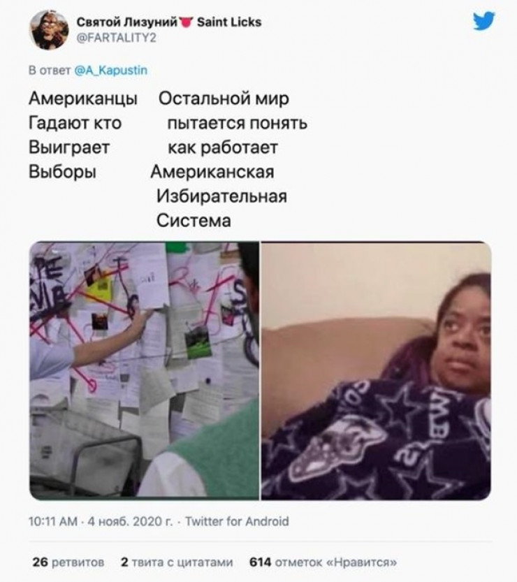 АҚШ-тағы президент сайлауын қарапайым жұмысшыларға дейін бақылап отырған секілді. Желіде мұндай әзіл көп.
