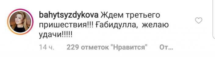 "Ждем третьего пришествия!!! Габидулла, желаю удачи!" - пишет @bahytsyzdykova.